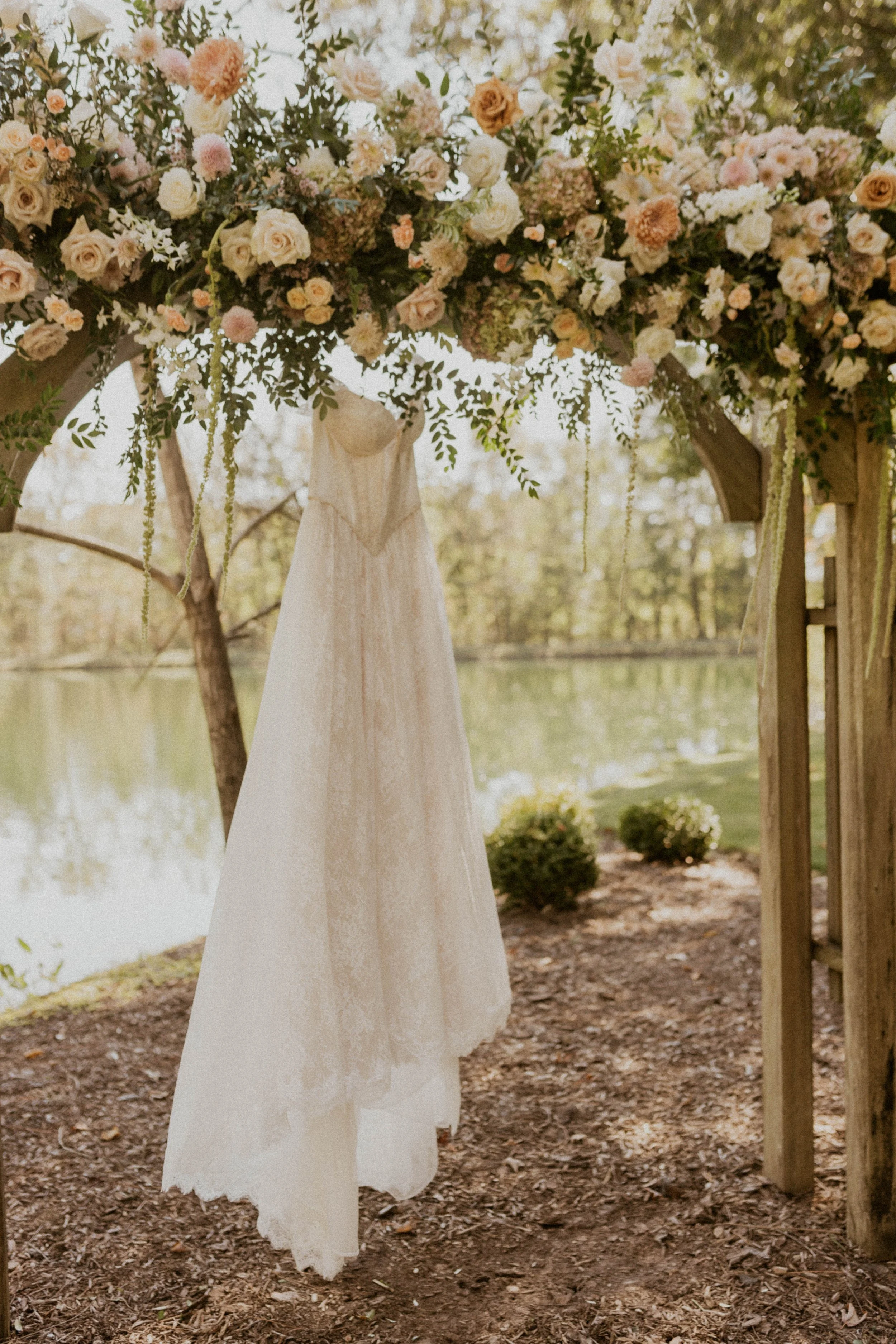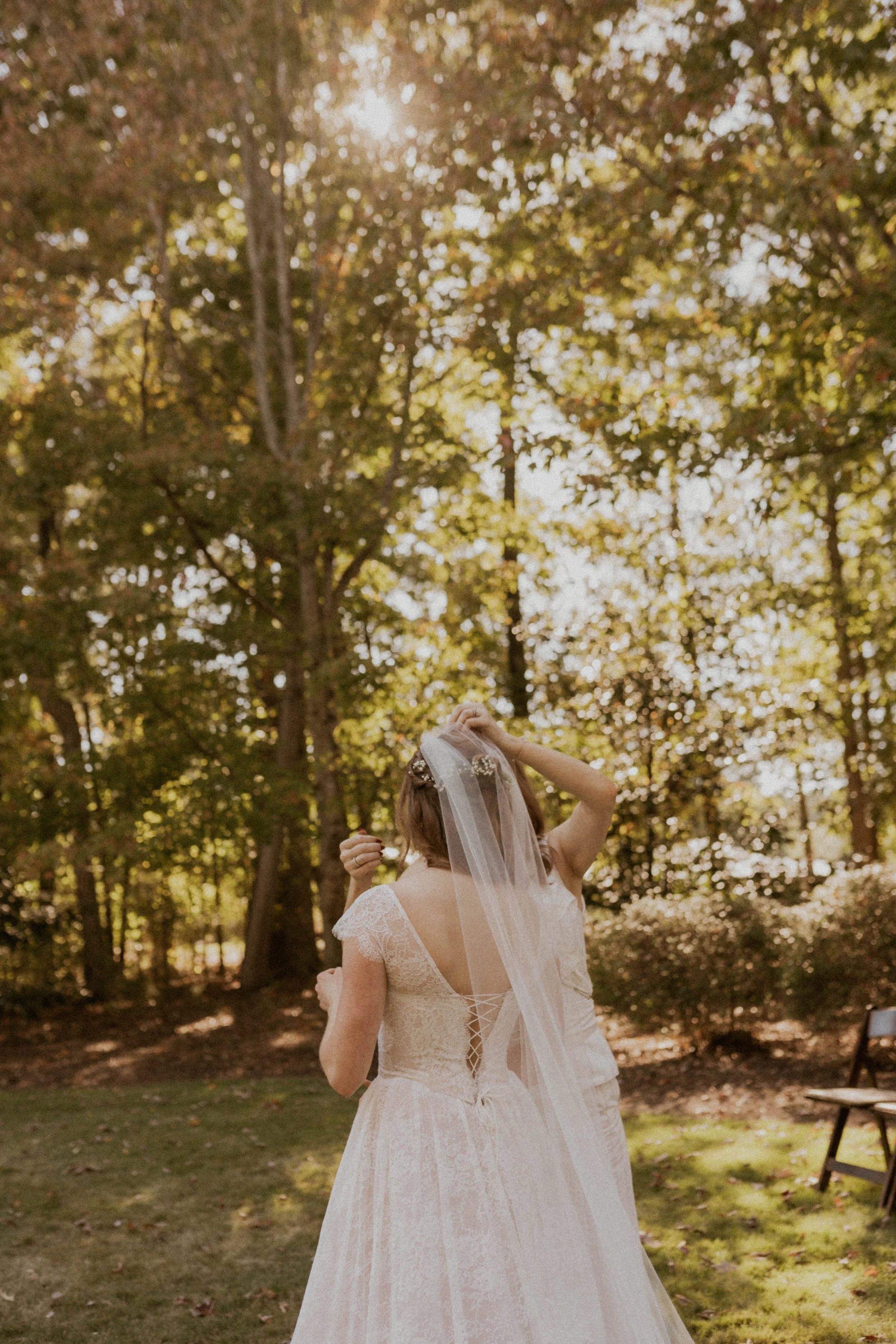 Emma got ready with her bridesmaids just at the edge of the forest, tucked beside the pond on the property. The morning light filtered through the trees, casting a soft golden glow over everything..