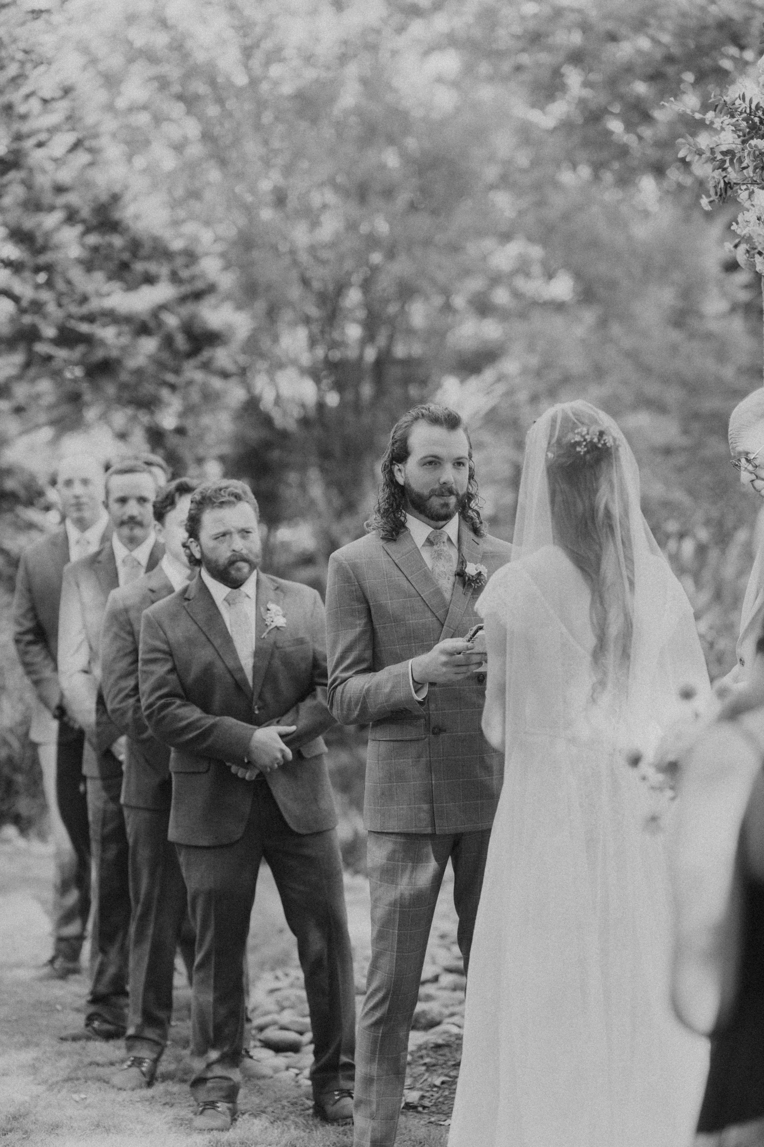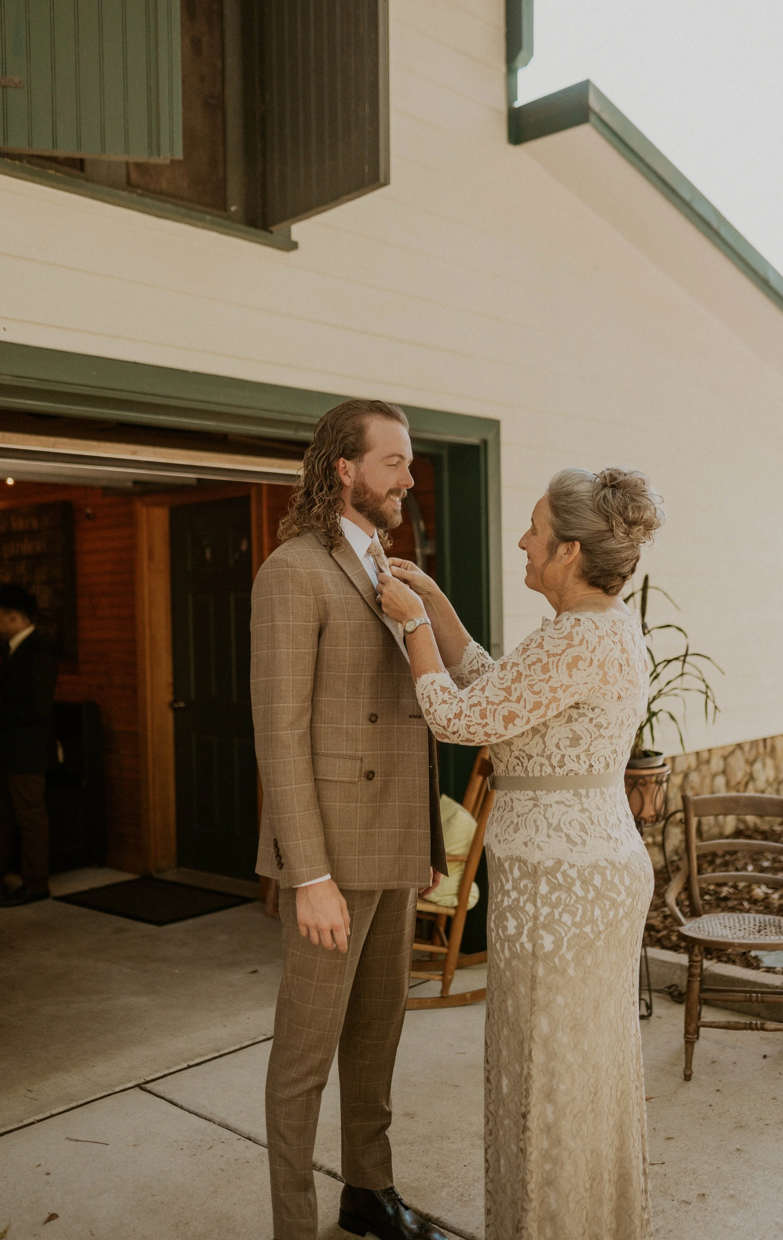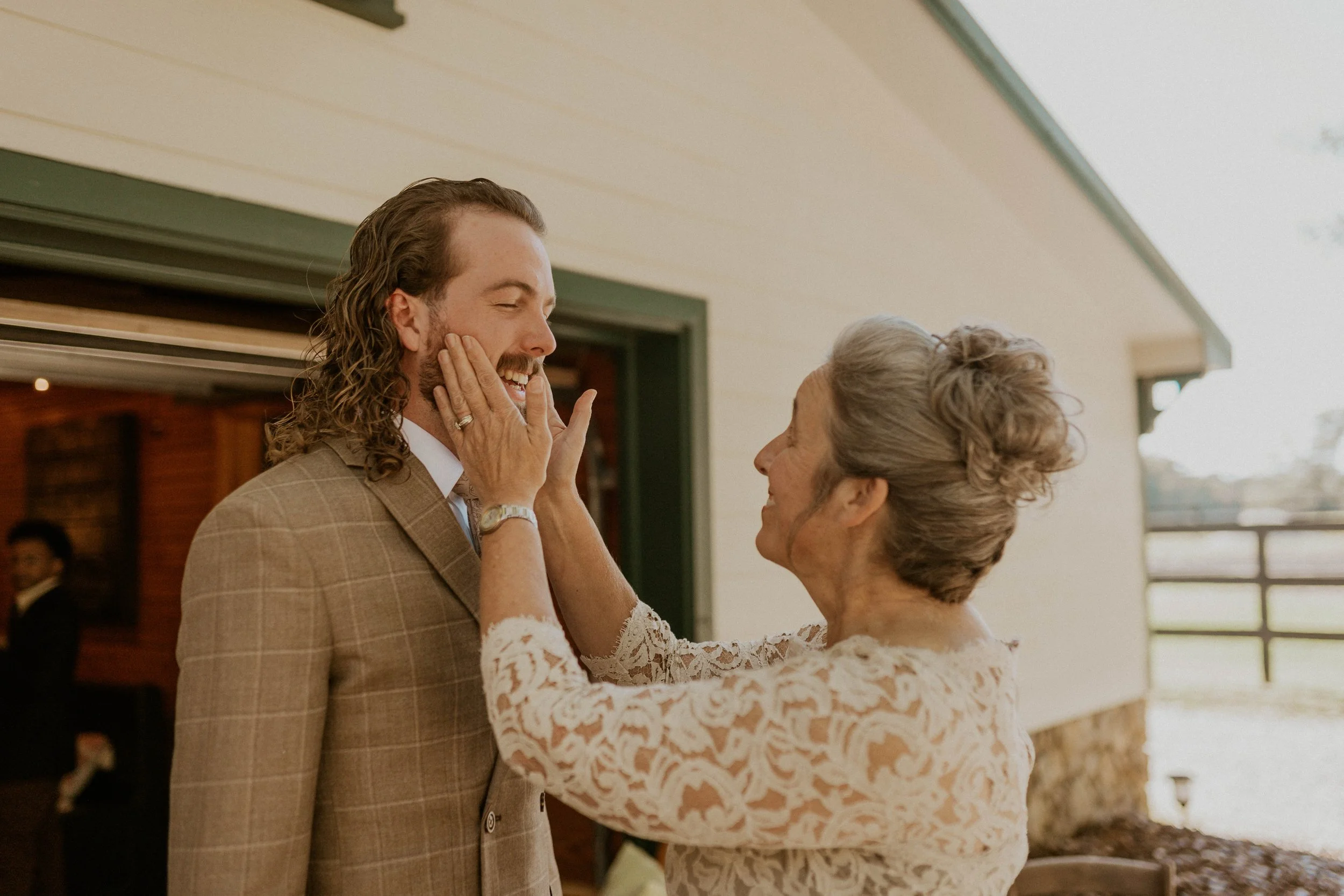 On the other side of the property, Cam got ready with his groomsmen. A few beers were shared, jokes were made, and the nervous energy that sometimes comes with a wedding morning gave way to excitement and connection.
