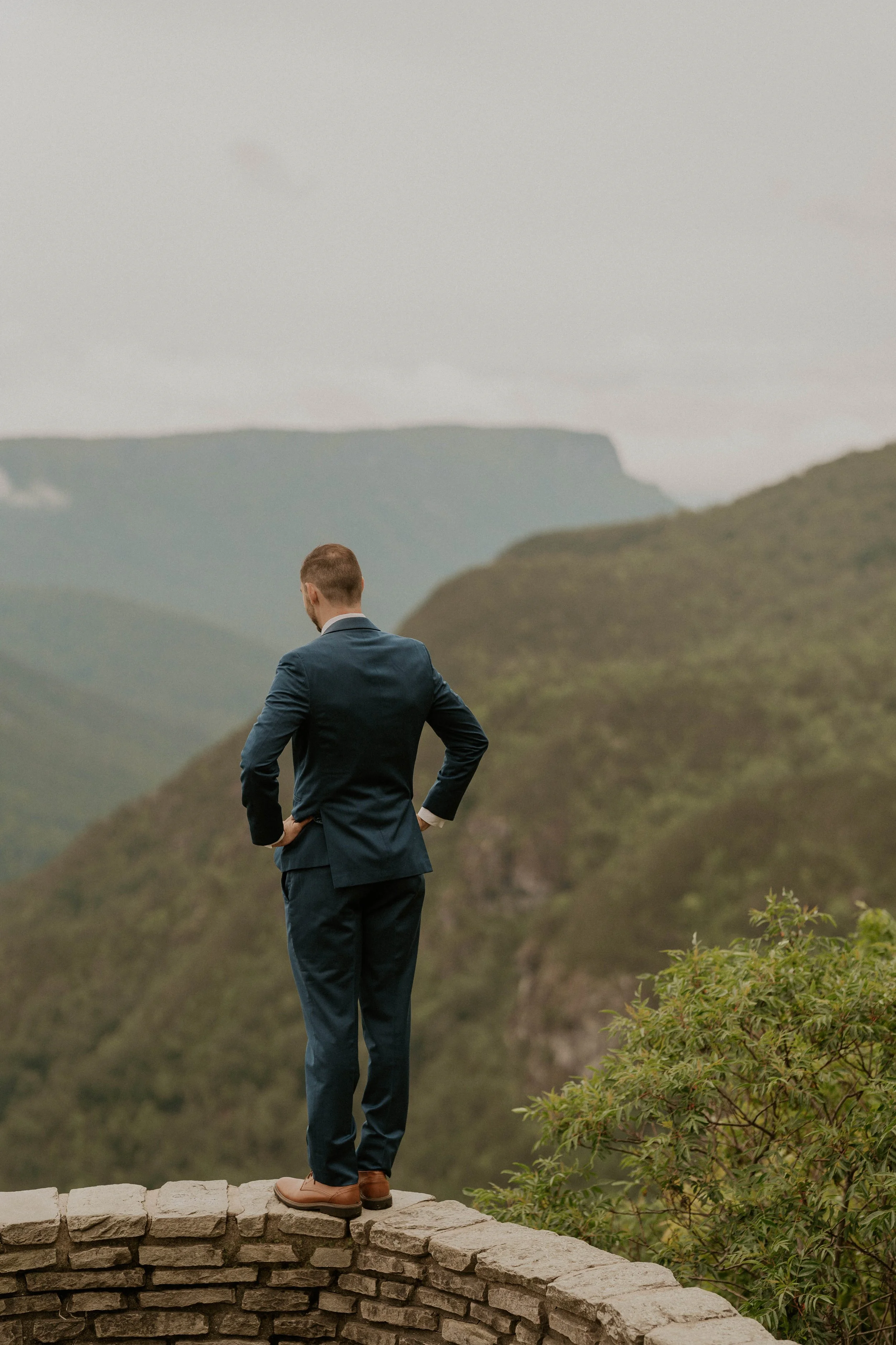 Joe and Ashley chose to elope at Wiseman's View, one of the most stunning and accessible elopement locations near Boone, North Carolina. Tucked along the rim of Linville Gorge, this overlook offers sweeping, cinematic views of the gorge without requiring a strenuous hike.