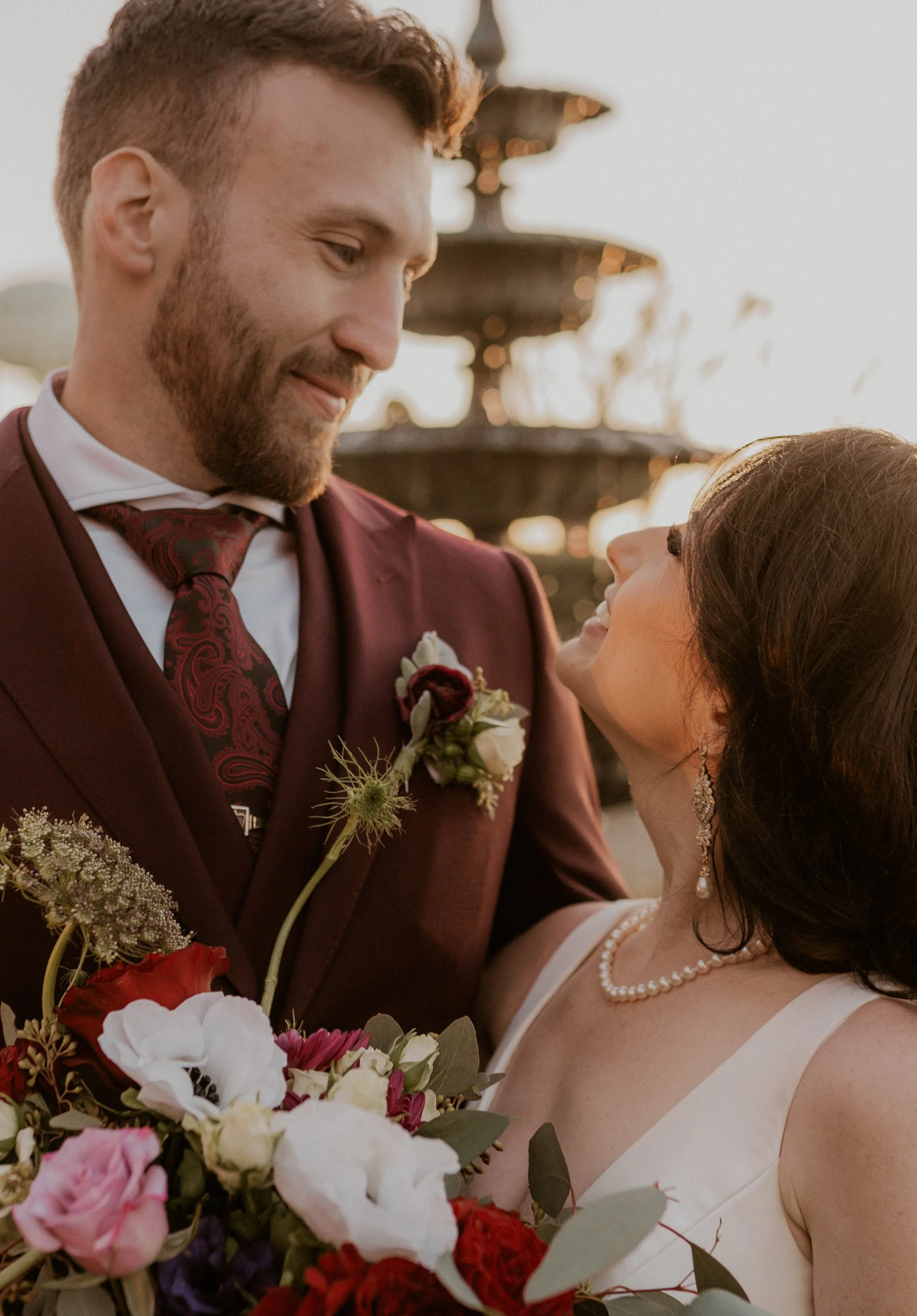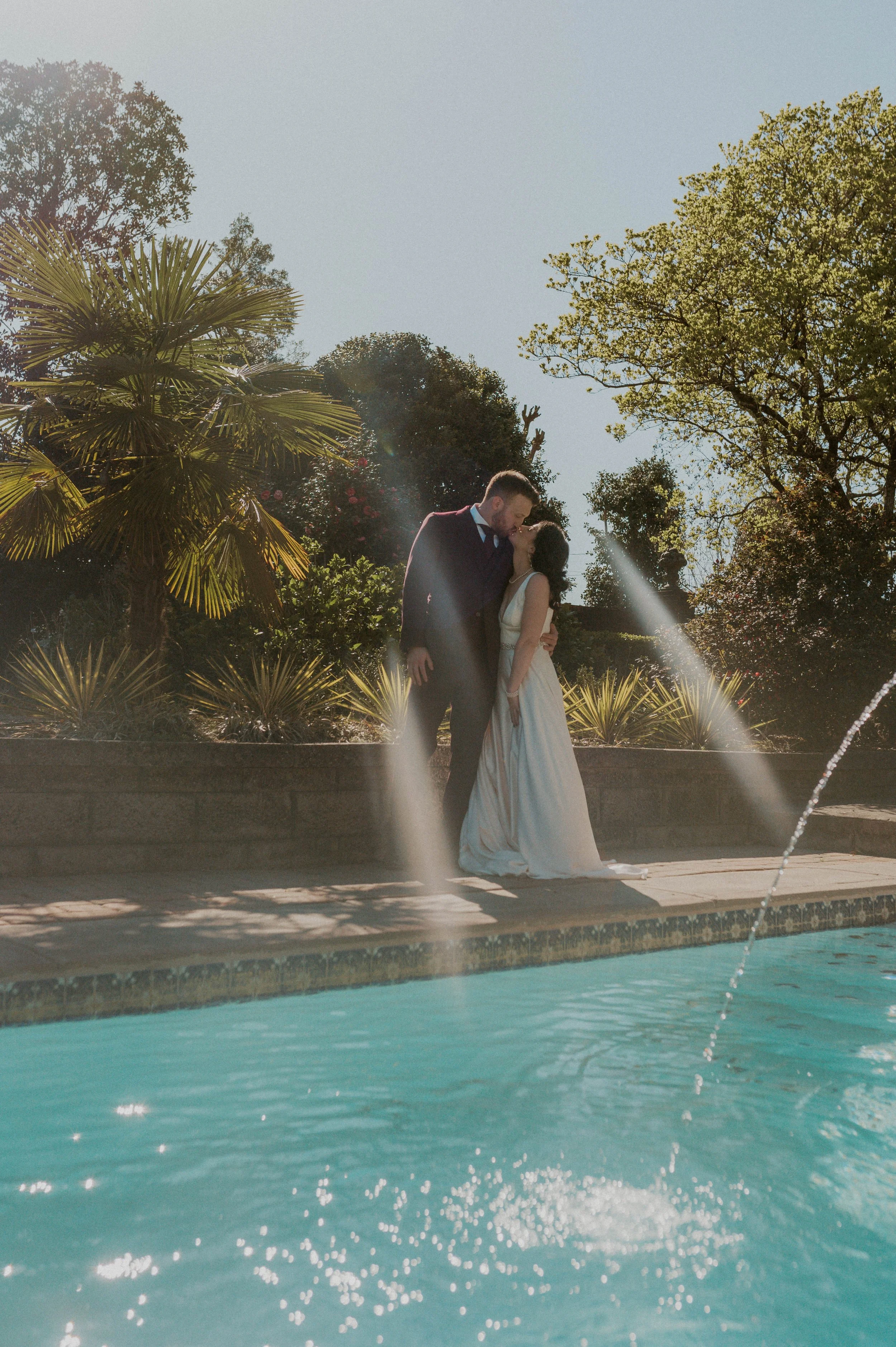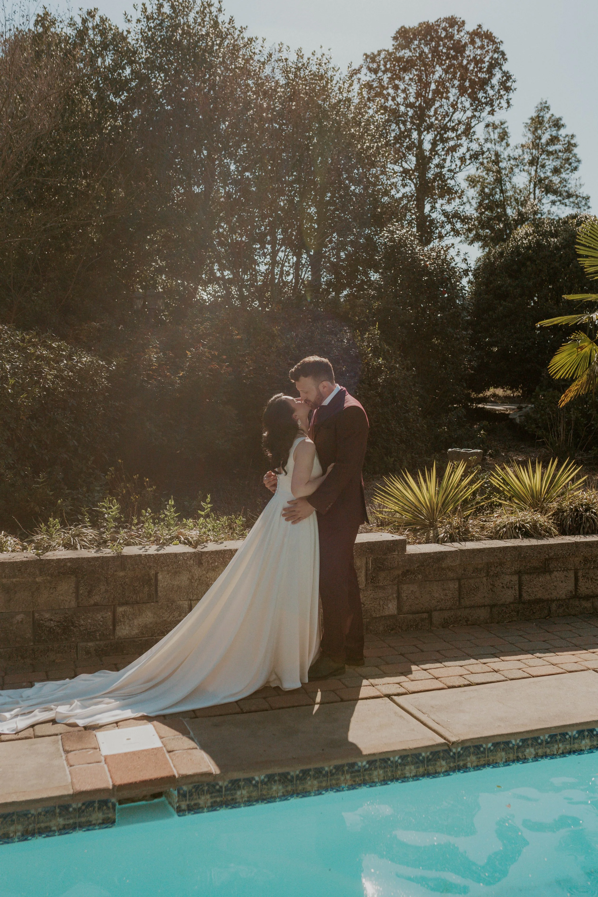 After an emotional first look with Kim’s dad, it was time for a first look with Logan. We set up at the edge of a stunning pool filled with turquoise water and surrounded by sculptures and greenery. The whole thing was giving Italian countryside vibes. Logan’s reaction to seeing Kim in her stunning wedding dress for the first time was magical. He was choked up at first and then couldn’t stop telling her how beautiful she looked.